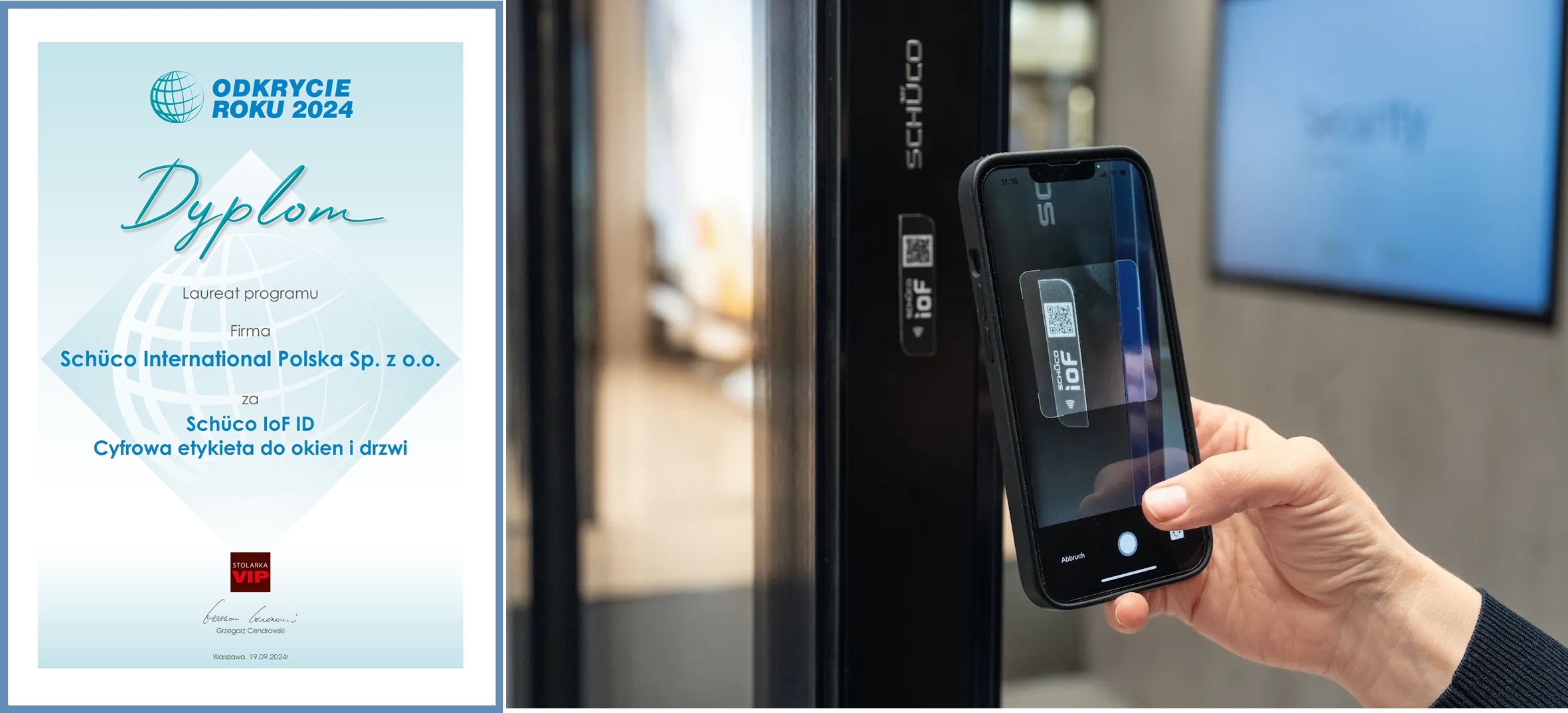 Za unikalny system Schüco loF ID, który nadaje oknom, drzwiom i fasadom cyfrową tożsamość. To rozwiązanie otwiera nowe możliwości w zarządzaniu cyklem życia produktów, ich serwisowaniem oraz automatyzacją procesów obsługi klienta.