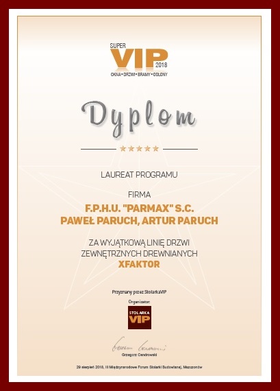 Podczas III Międzynarodowego Forum Stolarki w Mszczonowie w dn. 29-30 sierpnia, nagrodziliśmy także Laureatów programu Super VIP 2018. Oto nasi Laureaci: firma P.H.U. TECHNIKA OKIENNA ALEKSANDER RDUCH & ZBIGNIEW BOREK, firma FAKRO oraz firma PARMAX.