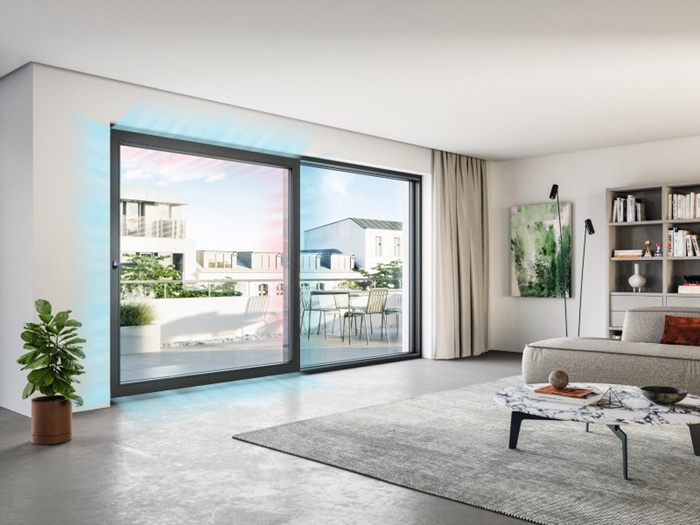 Doskonałe parametry systemu w połączeniu z dużą swobodą projektową sprawiają, że spełnia on różnorodne wymagania stawiane nie tylko przez klientów indywidualnych oraz architektów, lecz także deweloperów czy spółdzielnie mieszkaniowe. Takie modne drzwi przesuwne można bowiem coraz częściej spotkać w budynkach wielokondygnacyjnych. Tego typu stolarka zastosowana jako wyjście z mieszkania na własny zielony taras lub balkon stwarza wyjątkowy klimat wolności i bliskości z naturą podobny do tego, jakim cieszą się właściciele domów jednorodzinnych. Jednocześnie system przesuwny nie zabiera przestrzeni wewnątrz mieszkania podczas otwierania, co znacznie ułatwia jego aranżację i zapewnia większy komfort użytkowania. To kluczowa zaleta zwłaszcza w przypadku niewielkich mieszkań czy wąskich pomieszczeń. Pomimo wysokiej szczelności w klasie 9A system Schüco LivIng oferuje bardzo praktyczną funkcję wentylacji szczelinowej. Aby zapewnić wymianę powietrza, nie trzeba odsuwać całego skrzydła. Wystarczy ustawić dźwignię poziomo, a skrzydło delikatnie odsuwa się równolegle do ościeżnicy, tworząc szczelinę o szerokości 6 mm, która jest wystarczająca do efektywnego wietrzenia. Wszystko to powoduje, że okna i drzwi przesuwne Schüco LivIng z PVC-U są niezwykle wszechstronne.