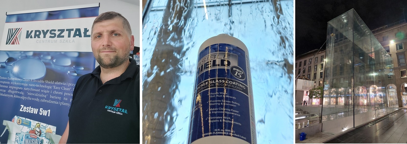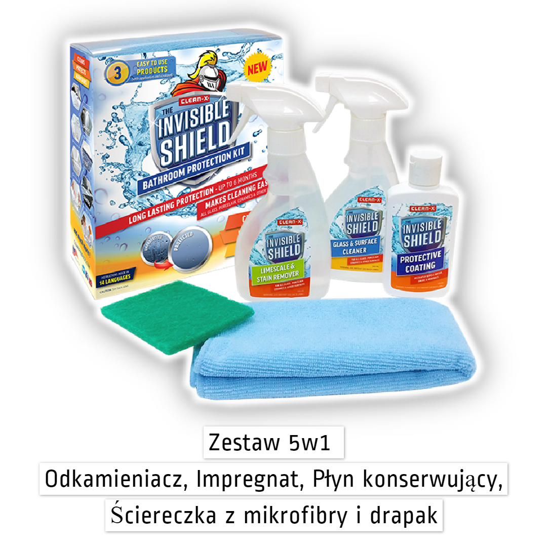 Produktem, którym od czterech lat owocnie dzielimy się na rynku polskim i w ostatnim czasie z całą Europą, są amerykańskie Impregnaty do Szkła i Ceramiki marki Invisible Shield.  Pięć lat temu jako firma szklarska, zaczęliśmy szukać najlepszego impregnatu hydrofobowego na rynku, aby można go było wdrożyć do produkowanych przez nas elementów szklanych. Chcieliśmy dorzucić coś extra, coś od siebie dla naszych klientów, aby gotowe szyby, które im oferujemy, były lepsze od tych, oferowanych przez każdy inny zakład szklarski. Chcieliśmy, aby oferowane przez nas kabiny prysznicowe wytrzymywały więcej czasu czyste, aby balustrady szklane łatwiej się czyściły, aby oferowane przez nas fasady szklane mniej się rysowały i aby daszki szklane wyglądały lepiej niż kiedykolwiek, a duże przeszklenia były łatwiejsze w utrzymaniu, zaś produkowane przez nas szkło nie korodowało i nie rysowało się tak szybko.