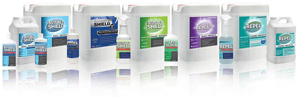 Jak wiadomo, szkło, jako że jest chropowate, łatwo się brudzi. Brudy i minerały wchodzą w strukturę szkła i jeśli tam pozostaną, bardzo trudno je stamtąd usunąć i przywrócić pierwotny blask. Dzięki naszemu impregnatowi jesteśmy w stanie zatrzymać ten proces „starzenia” się szkła i unikamy jego korozji, a nawet nadmiernego rysowania się. Nasze płyny to gama produktów do pielęgnacji szkła. Środki z naszej oferty dzielą się na trzy grupy: 1. myjące, 2. impregnujące i 3. konserwujące zaimpregnowaną powierzchnię. Środki takie jak Glass Scrub® czy Limescale Remover® idealnie doczyszczą szkło i przygotują powierzchnię do jej zaimpregnowania. Impregnat Invisible Shield® idealnie zabezpieczy szkło, gdyż działa na zasadzie nanocząsteczek, które wypełniają pory w szkle, pozostawiając idealnie gładką powierzchnię, do której brud nie ma dostępu, mniej się osadza, w efekcie czego szkło jest łatwiejsze do czyszczenia, po zaimpregnowaniu nie trzeba szorować i skrobać nagromadzonych brudów. Oczywiście produkt nie wykona za nas pracy, ale znacznie ułatwi proces sprzątania i czyszczenia, dlatego ważne jest również dbanie o szkło po jego zaimpregnowaniu. Z pomocą przychodzi tutaj niezawodny płyn REPEL®. Jest to płyn, który myje i konserwuje zaimpregnowaną powierzchnię.