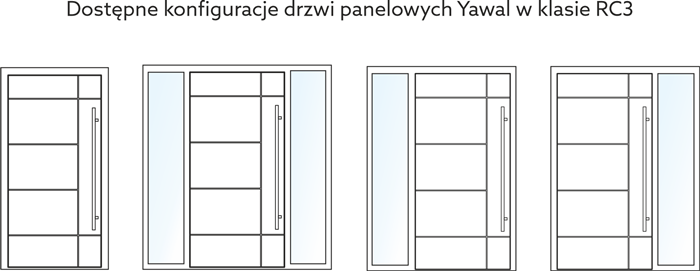 Yawal na pierwszym miejscu stawia sobie szeroko rozumiane bezpieczeństwo użytkowania, dlatego też wprowadził szereg modyfikacji, dzięki którym jednoskrzydłowe drzwi panelowe Yawal wykonane na bazie systemu TM 102HI wyposażone w doświetla boczne uzyskały klasę antywłamaniowości RC3. Yawal jako pierwszy na rynku stolarki aluminiowej oferuje inwestorom rozwiązanie tego typu w tak wysokiej klasie zabezpieczeń przed włamaniem. Aby konstrukcja drzwi panelowych z doświetlami spełniała wymagania klasy RC3 określone przez laboratorium Instytutu Mechaniki Precyzyjnej w Warszawie, nie może przekroczyć 2600 mm wysokości. Do stworzenia bocznych przeszkleń należy z kolei wykorzystać szyby antywłamaniowe w klasie P5.