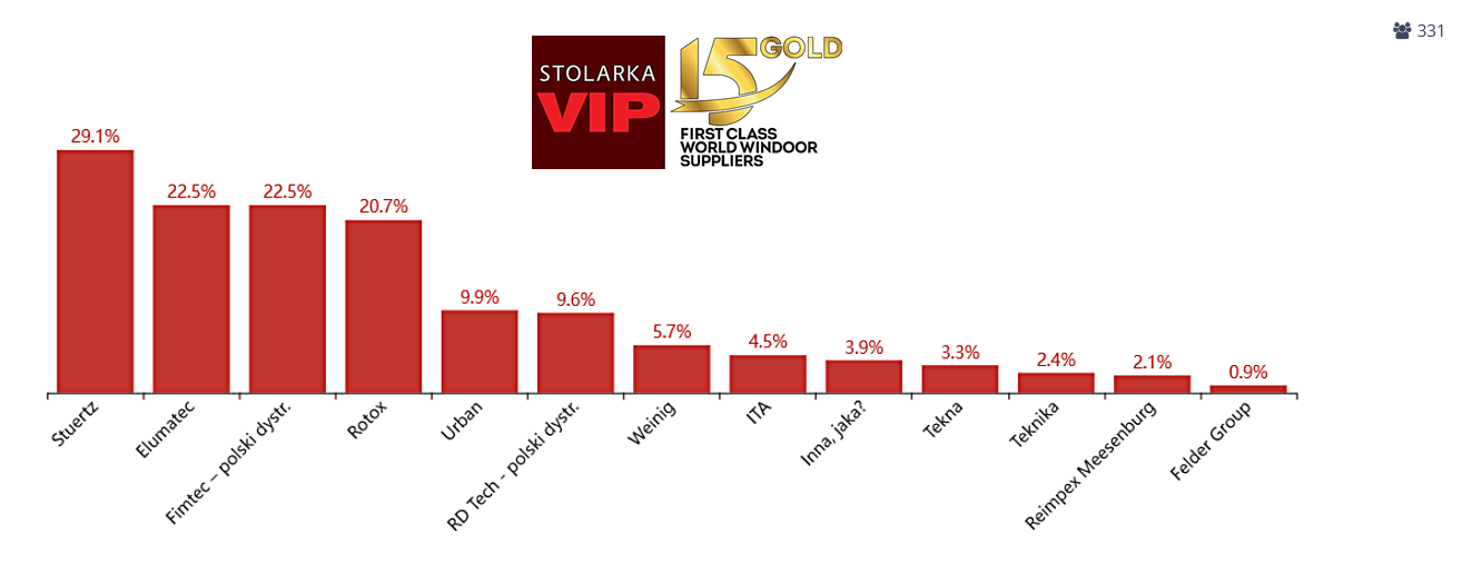 Wyróżnienia przyznano na podstawie profesjonalnie przygotowanej i przeprowadzonej przez firmę zewnętrzną ankiety, w branżowym głosowaniu internetowym. Wszystko odbyło się pod naszym autorskim nadzorem. Głos oddała bardzo duża, reprezentatywna grupa ponad 330 respondentów. Wśród nich znalazły się firmy producenckie, dostawcy komponentów, dystrybutorzy, dilerzy, media i eksperci branżowi. Nasze ponad 14-letnie doświadczenie w branży stolarki jest najlepszym gwarantem rzetelności przeprowadzonej ankiety, ale przede wszystkim wiedzy o firmach, analizy rynku i bieżącego kontaktu z ponad 1000 + firm w całej Polsce – stwierdza Grzegorz Cendrowski, prezes Stolarka VIP.