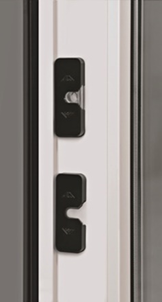 Drobne elementy ryglujące na słupku z osłonkami (po prawej) sprawiają, że nawet przy otwartym skrzydle przesuwnym zachowana jest wizualna harmonia i jednolita estetyka całego systemu. Roto Patio Inowa elementy ryglujące z osłonkami.